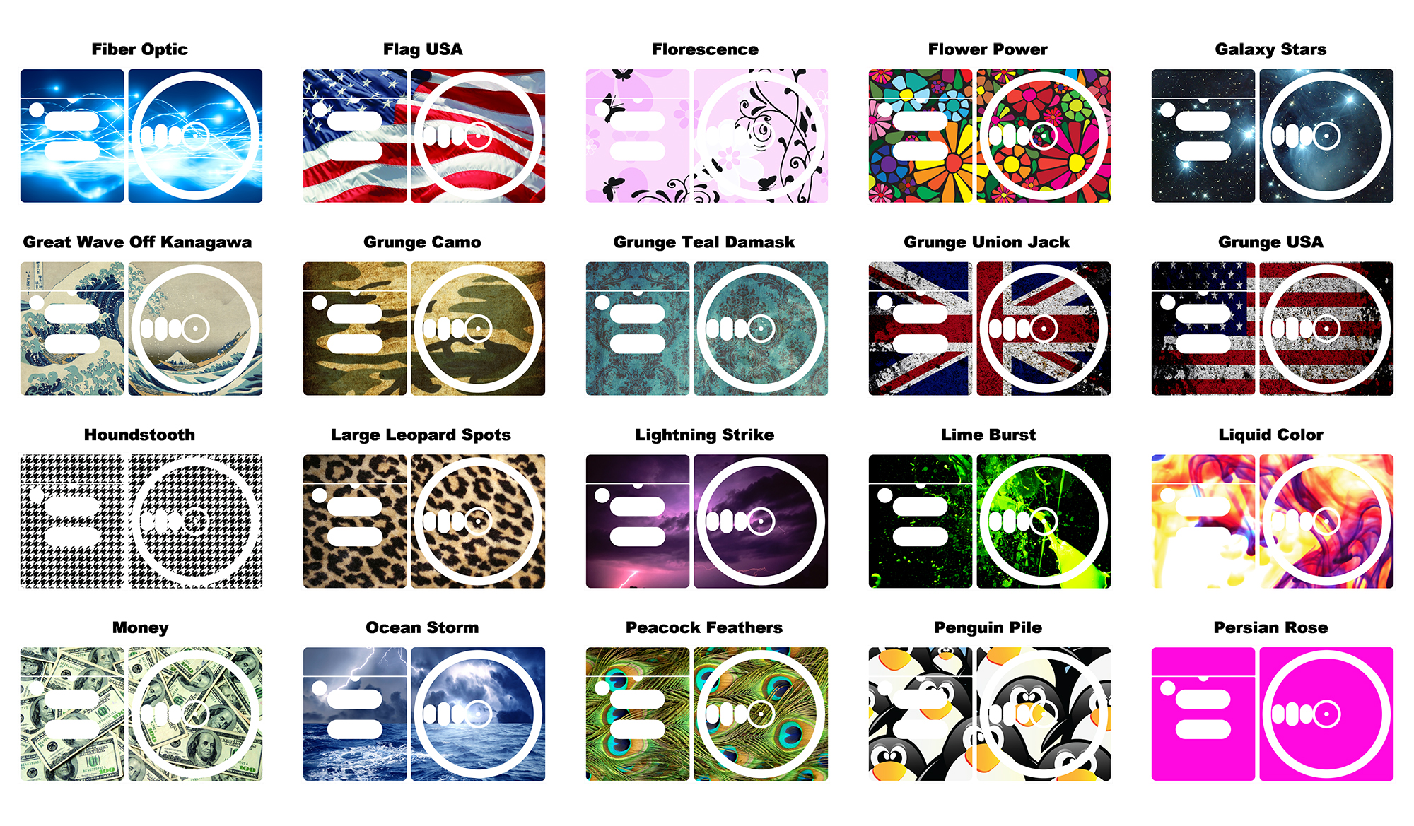 Our skins are made on large format professional printers and plotters from high-quality vinyl. Our adhesive allows the skin to be removable and repositionable during installation and then sticks strongly afterward. We use UV resistant inks and apply an additional UV resistant, scratch resistant, glossy laminate. This will ensure that your skins will look great for many years to come. The adhesive is quite strong but will allow the skin to come off in one piece and will not leave any residue behind or damage your device.