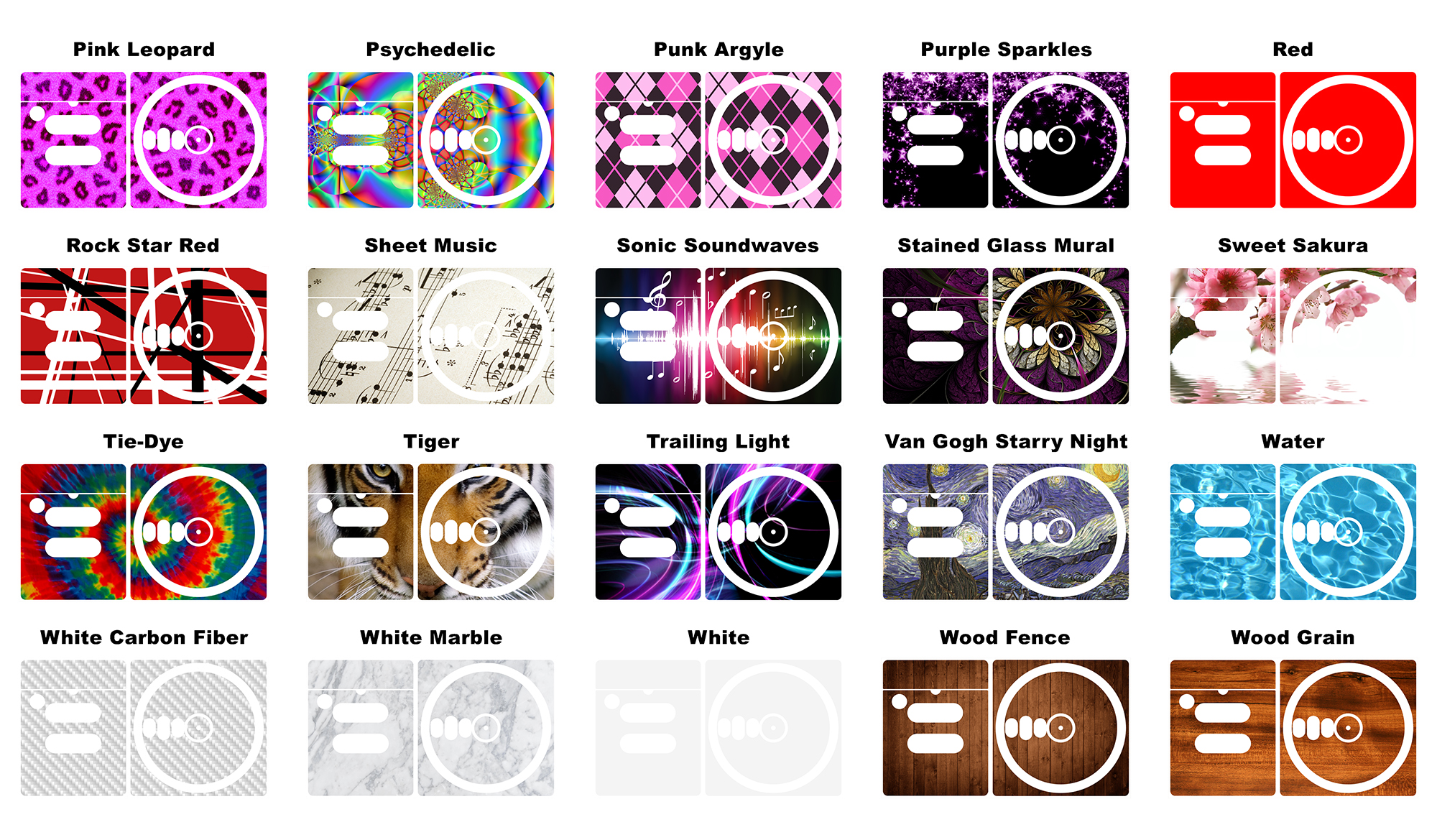 This skin covers the parts of the device shown in the preview image. This listing is for vinyl skins only, turntables not included.Â