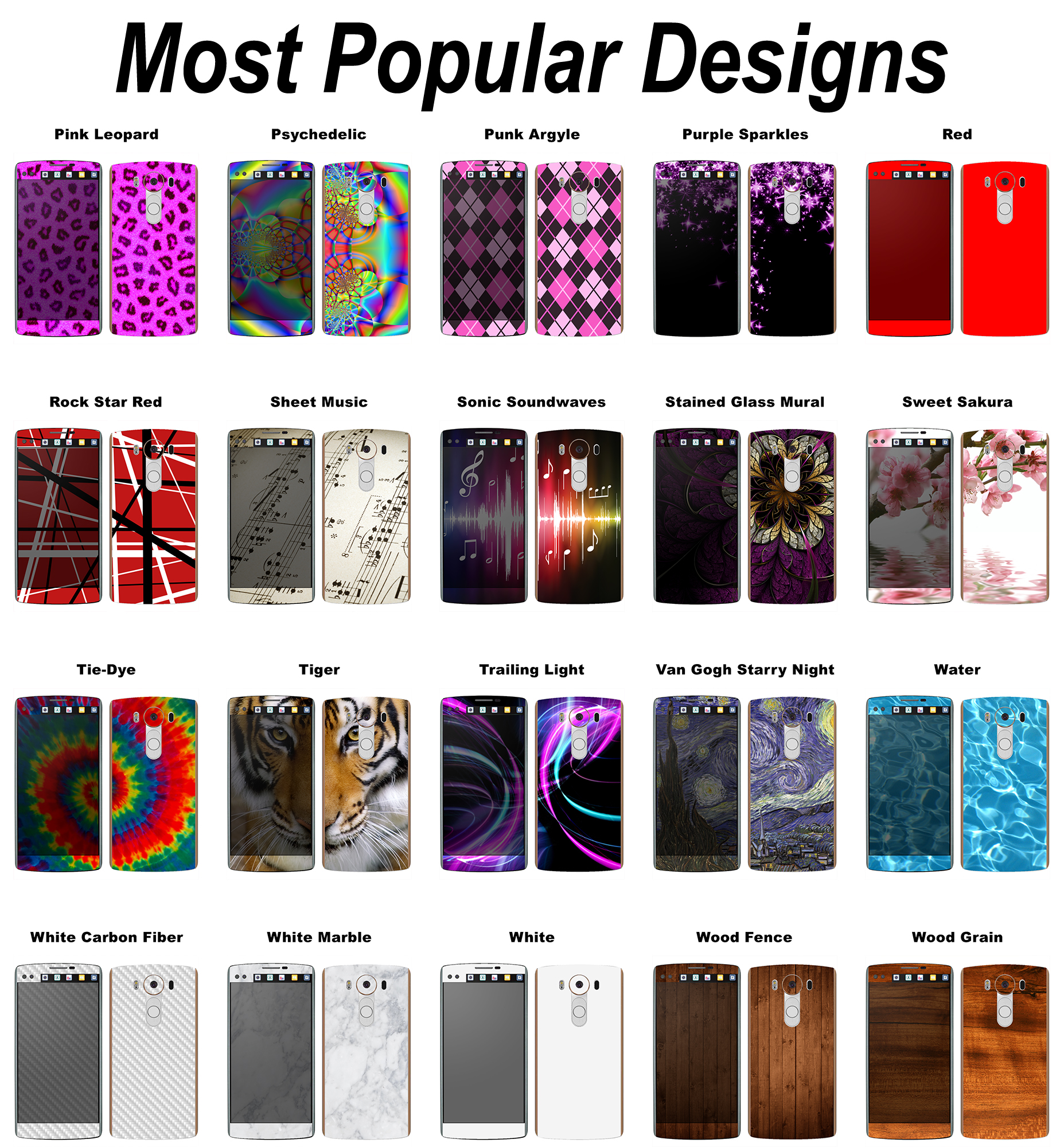 Choose any design you’d like for your LG V10, just click the “Customize” button to begin. Pick from one of our designs or create a completely custom design using your own images, business logo and custom text.