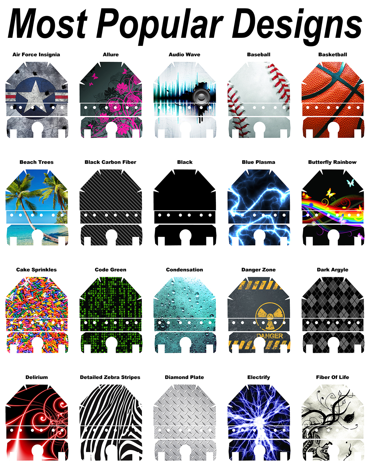 Our skins are made on large format professional printers and plotters from high-quality vinyl. Our adhesive allows the skin to be removable and repositionable during installation and then sticks strongly afterward. We use UV resistant inks and apply an additional UV resistant, scratch resistant, glossy laminate. This will ensure that your skins will look great for many years to come. The adhesive is quite strong but will allow the skin to come off in one piece and will not leave any residue behind or damage your device.