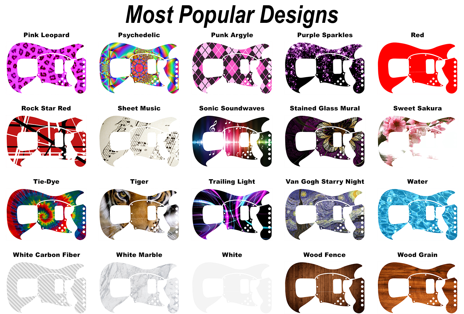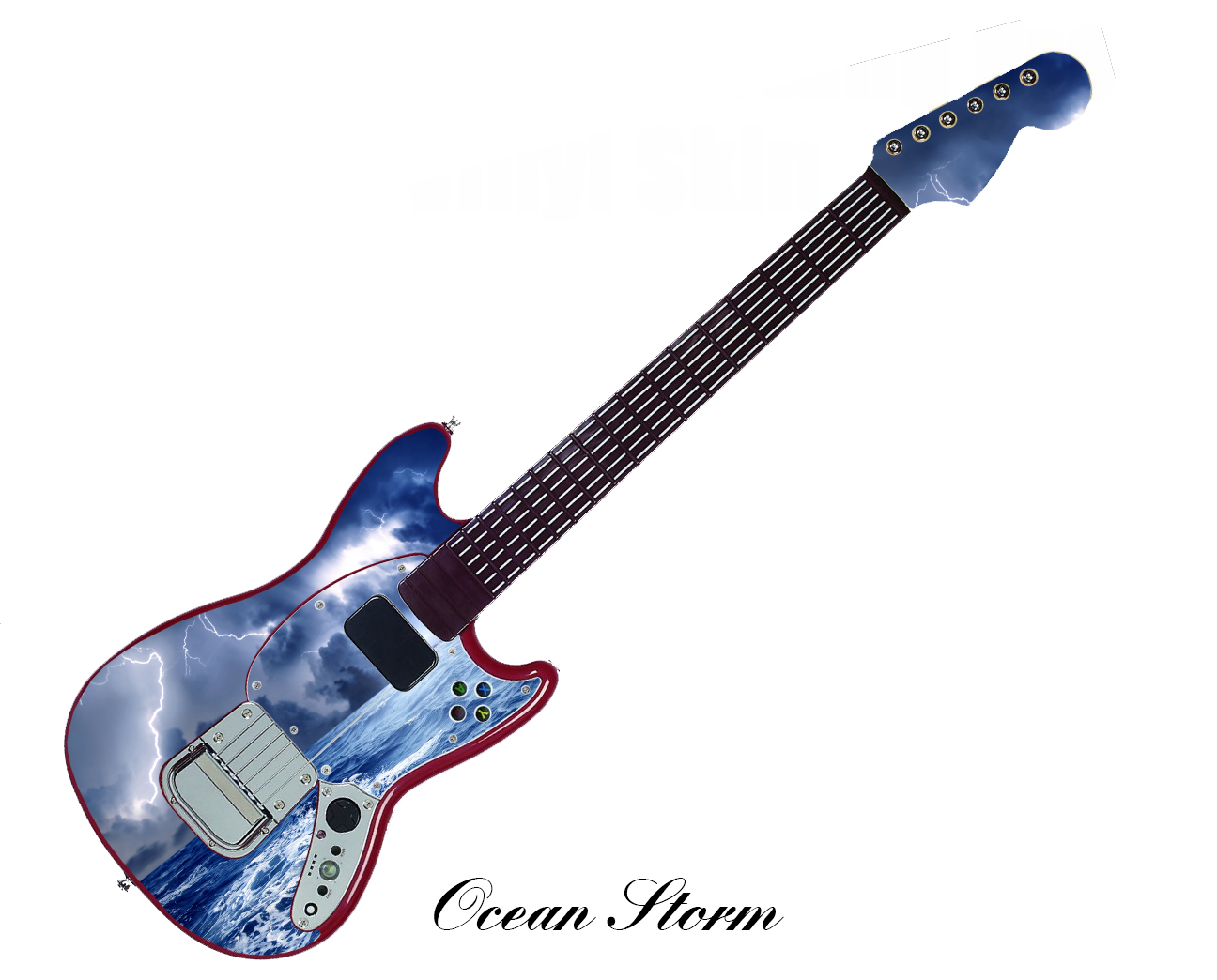 Choose any design you’d like for your Rock Band Mustang Pro guitar controller from Rock Band 3, just click the “Customize” button to begin. Skins are for gaming controllers, they do not fit actual guitars. Pick from one of our designs or create a completely custom design using your own images, business logo and custom text.