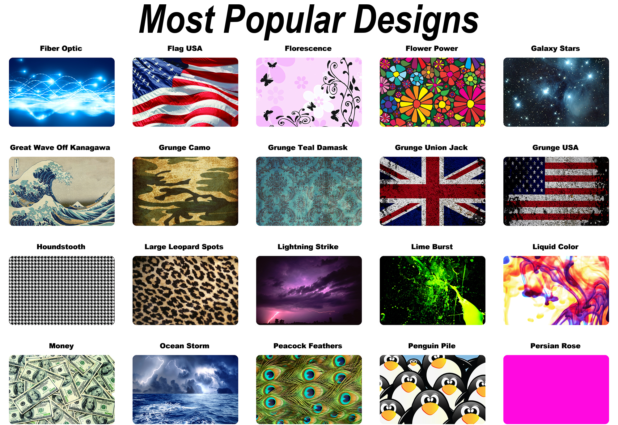 Our skins are made on large format professional printers and plotters from high-quality vinyl. Our adhesive allows the skin to be removable and repositionable during installation and then sticks strongly afterward. We use UV resistant inks and apply an additional UV resistant, scratch resistant, glossy laminate. This will ensure that your skins will look great for many years to come. The adhesive is quite strong but will allow the skin to come off in one piece and will not leave any residue behind or damage your device.